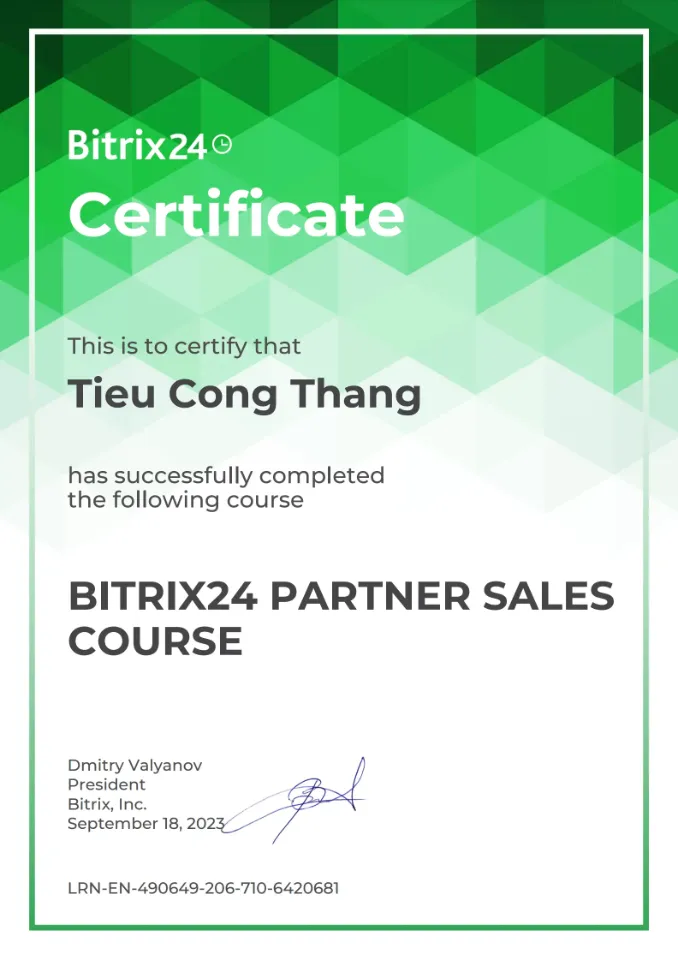 Chúng tôi là Gold Partner, 1 trong 8 đối tác doanh số lớn nhất Việt Nam và Top 120 toàn cầu của Bitrix24. Chúng tôi hỗ trợ từ kiến trúc tổng thể đến chi tiết triển khai.